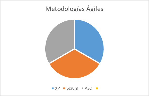 Dentro de las fuentes bibliográficas indagadas se reflejó que las metodologías ágiles más utilizadas actualmente son: XP que se enfoca en las buenas relaciones laborales que benefician en el aprendizaje de los desarrolladores para dar su mejor potencial al momento de realizar o ejecutar los proyectos, también la metodología Scrum que con su modelo de análisis y diseño brindan una metodología competitiva en el desarrollo de software, cabe recalcar que la metodología ASD también cuenta con puntos a favor ya que se enfoca en adaptarse al cambio con un ciclo definido de planificación diseño y construcción.