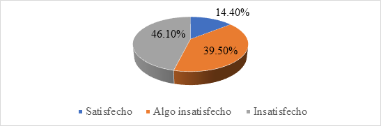 Según los datos obtenidos se indica que la ayudad recibida por parte de las instituciones en el periodo febrero 2022 febrero 2023, fue algo insatisfecho en un 46,10%, para 39,50% insatisfecho el 14,40% satisfecho lo que evidencia el descontento de las familias por la ayuda recibida.