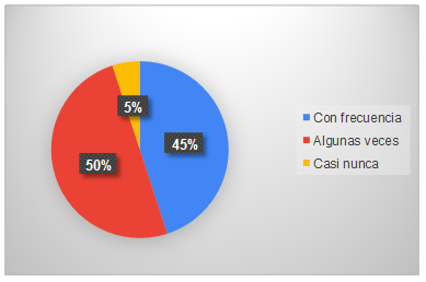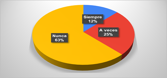 El 50% de los adultos mayores experimenta sentimientos de soledad de manera ocasional, lo que indica que esta emoción está presente, pero no domina su vida diaria. Un 45% de los encuestados reporta sentirse solos con frecuencia, lo que sugiere una vivencia más persistente de aislamiento emocional, probablemente debido a la falta de compañía regular o redes de apoyo social limitadas.