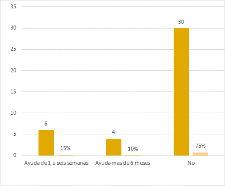 Se manifiesta una realidad preocupante en cuanto al apoyo que reciben los adultos mayores durante periodos de enfermedad. Un significativo 75% de los encuestados manifiesta no contar con ningún tipo de ayuda, lo que sugiere una posible falta de redes de apoyo sólidas o la escasa disponibilidad de cuidadores. Tan solo un pequeño porcentaje reporta recibir asistencia, ya sea temporal (de 1 a 6 semanas) o prolongada (más de 6 meses). Estos resultados subrayan la urgente necesidad de fortalecer las redes de apoyo, tanto familiares como comunitarias, para mejorar el bienestar y la calidad de vida de los adultos mayores en nuestra sociedad.