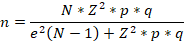 p = proporción estimada de la población que tiene la característica de interés (asumida en 0.5 para maximizar el tamaño de muestra) q = 1 - p