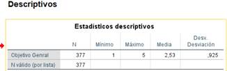 De acuerdo con los resultados obtenidos en el análisis estadístico descriptivo del objetivo general, se identificó que la media de percepción de los encuestados fue de (2,53) en una escala de (1 a 5). Este valor revela que la comunidad percibe de manera baja pero no totalmente negativa el impacto de las intervenciones policiales en la reducción del consumo de drogas. Asimismo, la desviación estándar de (0,925) sugiere una diversidad de opiniones dentro de la muestra, lo cual puede deberse a factores como experiencias personales, nivel de información o confianza en las intervenciones policiales.