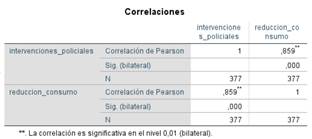 Tabla 2 Correlación de las intervenciones policiales en la reducción de consumo
