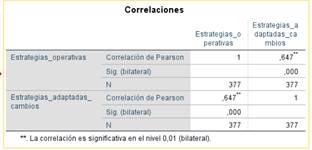 Tabla 4 Correlación de variables estrategias operativas en la prevalencia de consumo