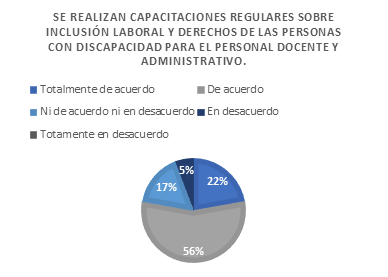 Se destaca la necesidad de fortalecer las capacitaciones al personal sobre discapacidad e inclusión laboral. |