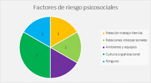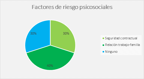 Es relevante mencionar que tres de los diez colaboradores sustitutos entrevistados no manifestaron la presencia de ningún factor de riesgo psicosocial, indicando que, aunque es un grupo vulnerable, no todos los individuos se encuentran afectados por esta problemática en el momento de la evaluación.