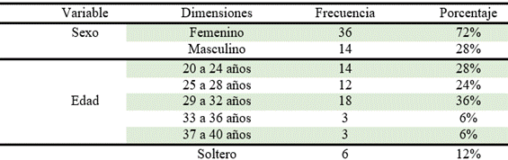 Tabla 1. Caracterización sociodemográfica del personal de enfermería del Hospital Básico Jipijapa